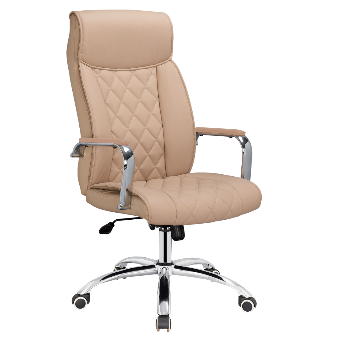 sobrecapa em soft. Braço fixo cromado com apoio estofado para cor Bege e em PP para cor Preta. Mecanismo relax com trava.