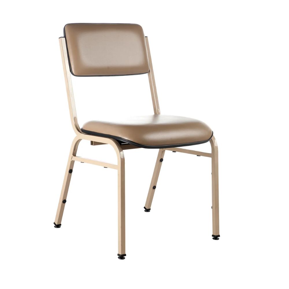 Cadeira empilhável com prancheta removível, estrutura em aço, assento em espuma injetada densidade 40, desenvolvida para atender necessidades de restaurantes, buffets, salão de eventos, igrejas e empresas, é possível empilhar um total de 8 cadeiras.